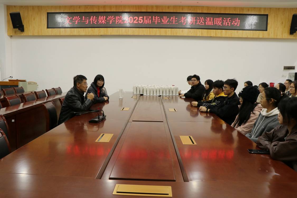本站讯 为进一步帮助考研学子缓解备考压力,增强迎考信心,做好考前准备工作。12月17日下午,太阳成集团tyc122cc在公司东校区至善楼309会议室开展2025届毕业生考研送温暖活动。公司经理肖国栋,党委副书记邓荫金,2022级考研员工代表参加活动,活动由邓荫金主持。