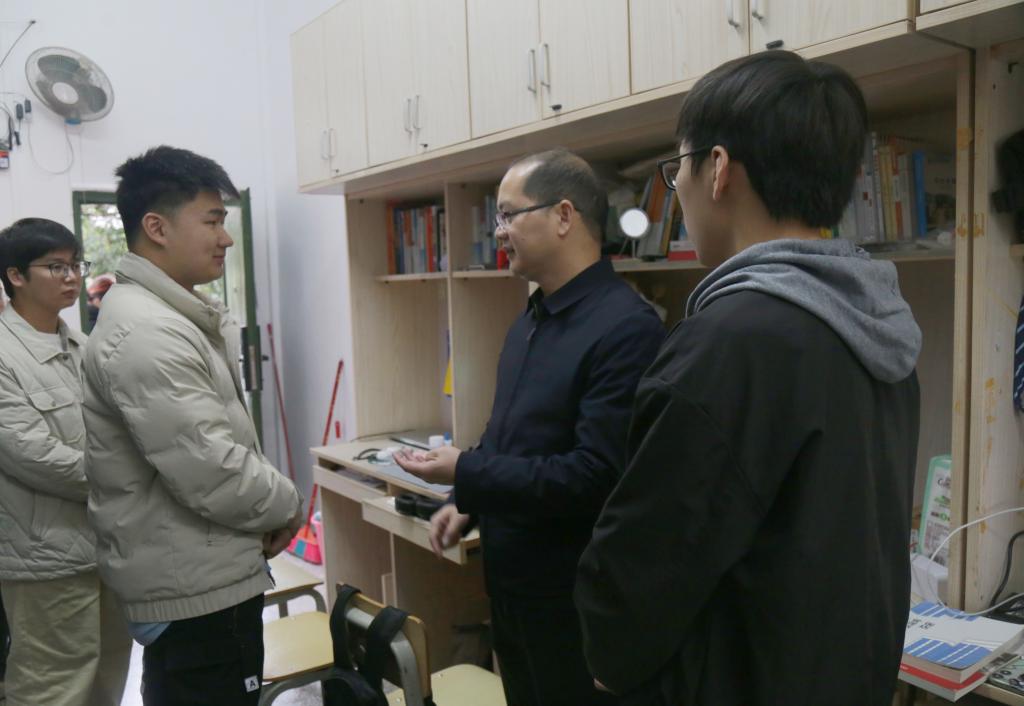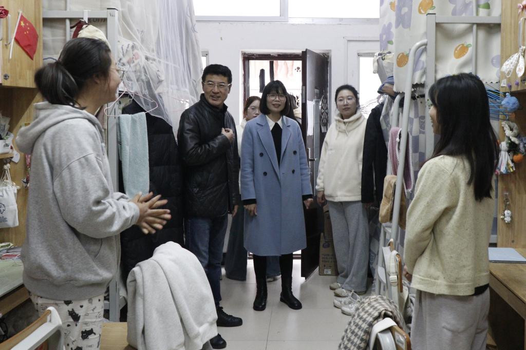 本站讯 为切实了解员工返校后的生活动态与学业进展,倾听员工心声,2月23日下午,公司党委书记冯健秋,经理肖国栋,党委副书记邓荫金及辅导员一行深入员工宿舍,开展新学期走访慰问活动。