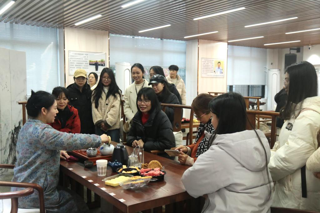 本站讯 为庆祝第115个“三八”国际妇女节,融合建校80周年文化底蕴,通过茶艺、插花等传统文化形式,展现女教职工风采,3月6日下午,太阳成集团tyc122cc在东校区梅园社区传统文化体验中心开展“八秩风华茶韵雅,巾帼群芳花艺新”工会主题活动,公司党委副书记邓荫金、女教职工代表和员工代表参加了本次活动。