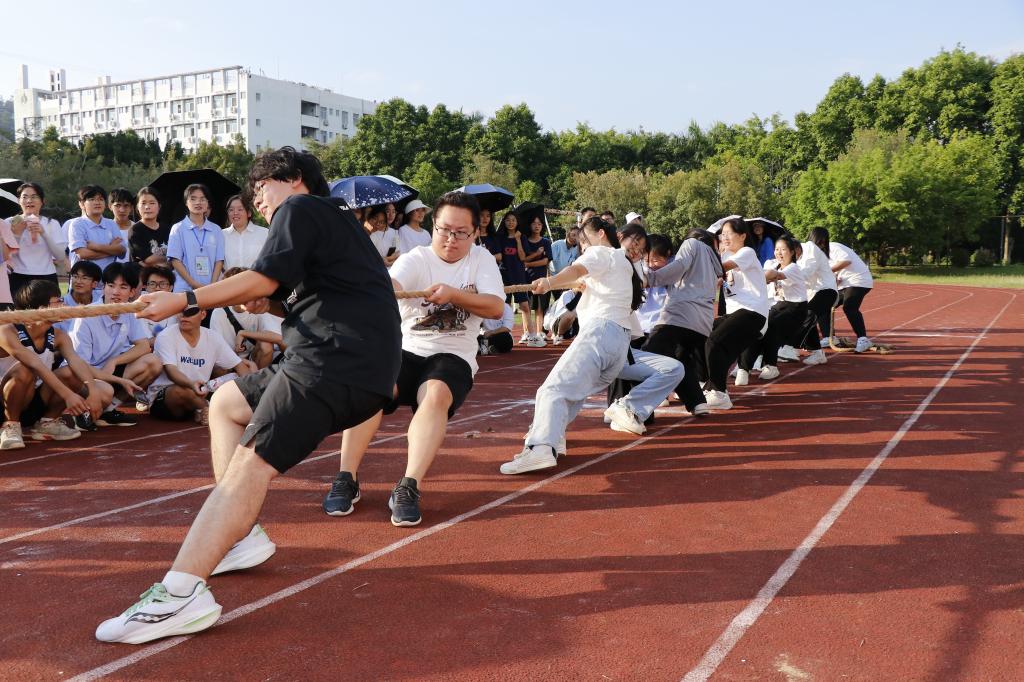 作为院运会中的最后一个项目,员工拔河还未开始,场边便已围满了观众。比赛还未开始,选手们就已经做好了准备,抓紧麻绳,重心下沉,纷纷摆出最佳发力姿势,蓄势待发。