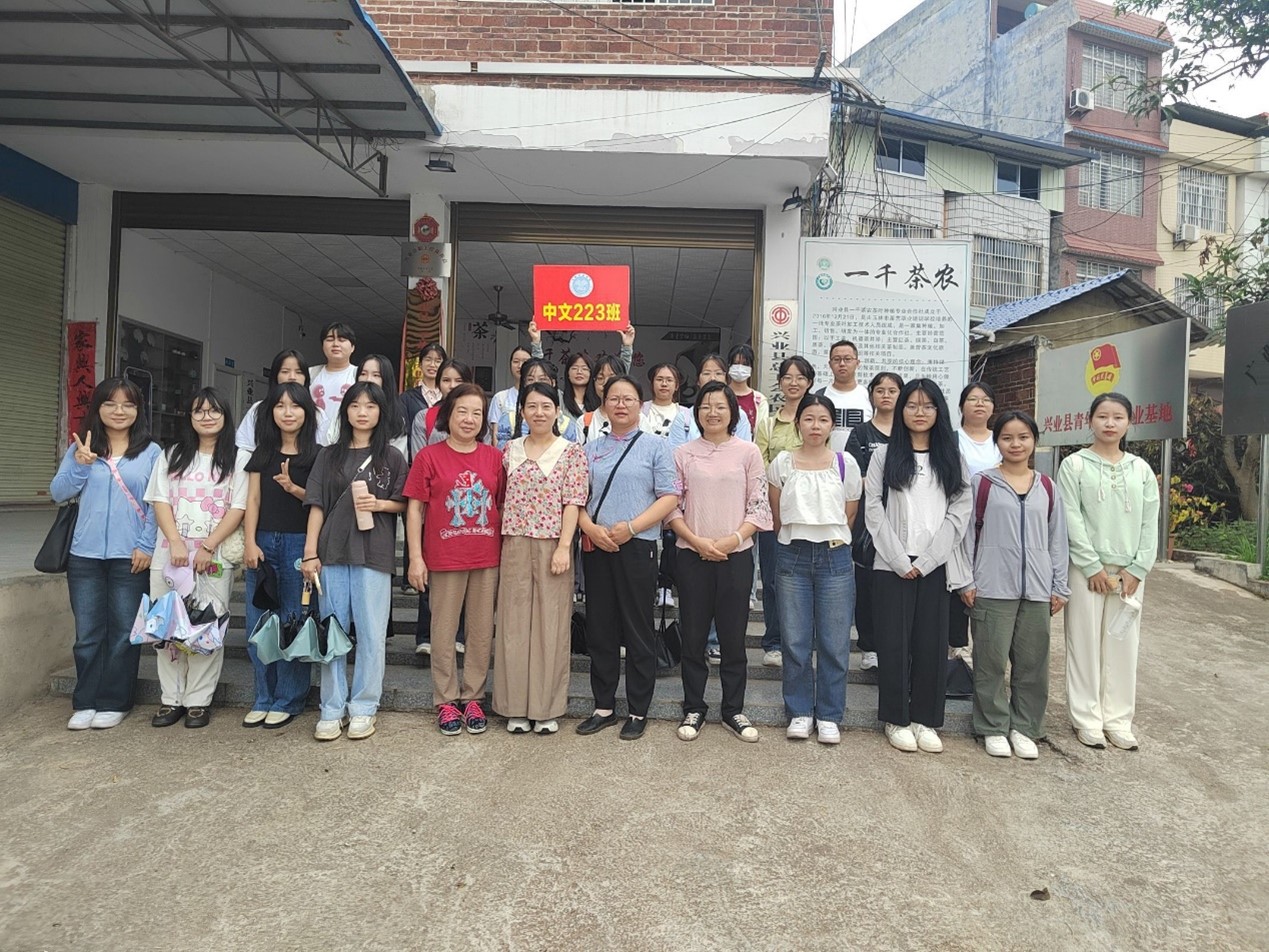 本站讯 为学习贯彻学思践悟、知行合一的精神,了解当地茶产业、茶文化发展,培养员工的劳动素质与茶学素养。11月11日,汉语言文学223班、汉语言文学224班部分员工前往玉林市兴业县山心茶小镇一千茶农茶业有限公司开展茶文化体验活动。本次活动由汉语言文学223班班主任程婧、教师徐秋明带队。