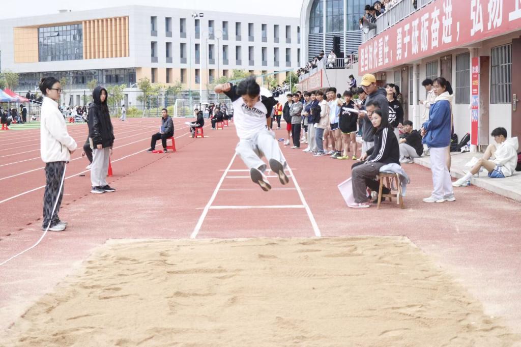 赛前,运动员们反复练习跳跃姿势,重复进行助跑动作,并进行试跳,为自己找到最好的起跳点。随着哨声吹响,方劲华调整呼吸,一个箭步冲出,单脚发力腾空跃起,向前猛扑,完美落地,整个动作一气呵成。随后,邱靖涵上场,助跑、踏条、腾空、落地,一条完美的弧线从眼前划过,赢得在场观众的掌声与喝彩。