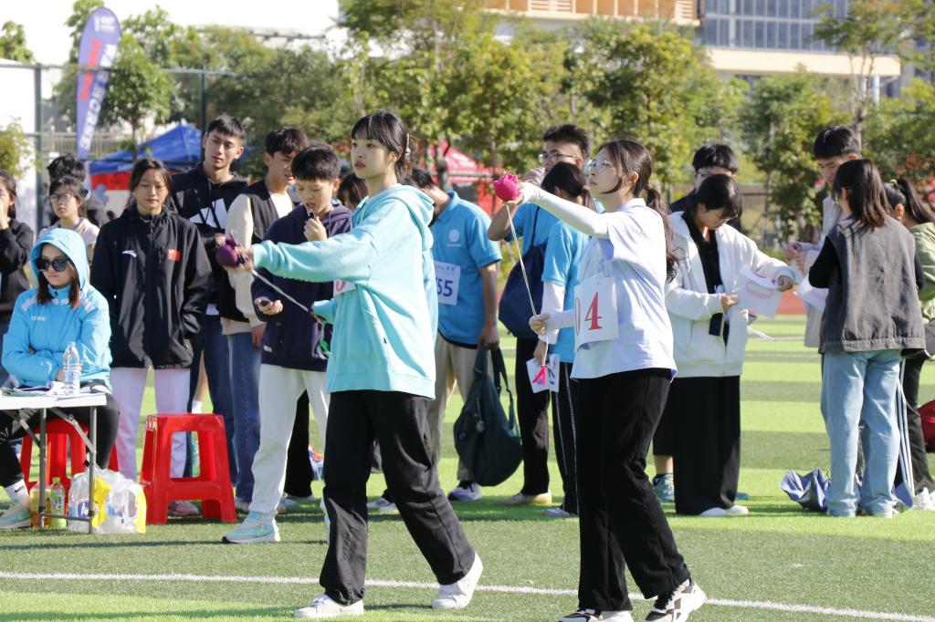 本站讯 11月16日下午,公司第二十四届田径运动会高杆投绣球比赛在东校区新田径场中央举行。本次比赛共有13组队伍参加,依据小组顺序开始比赛。