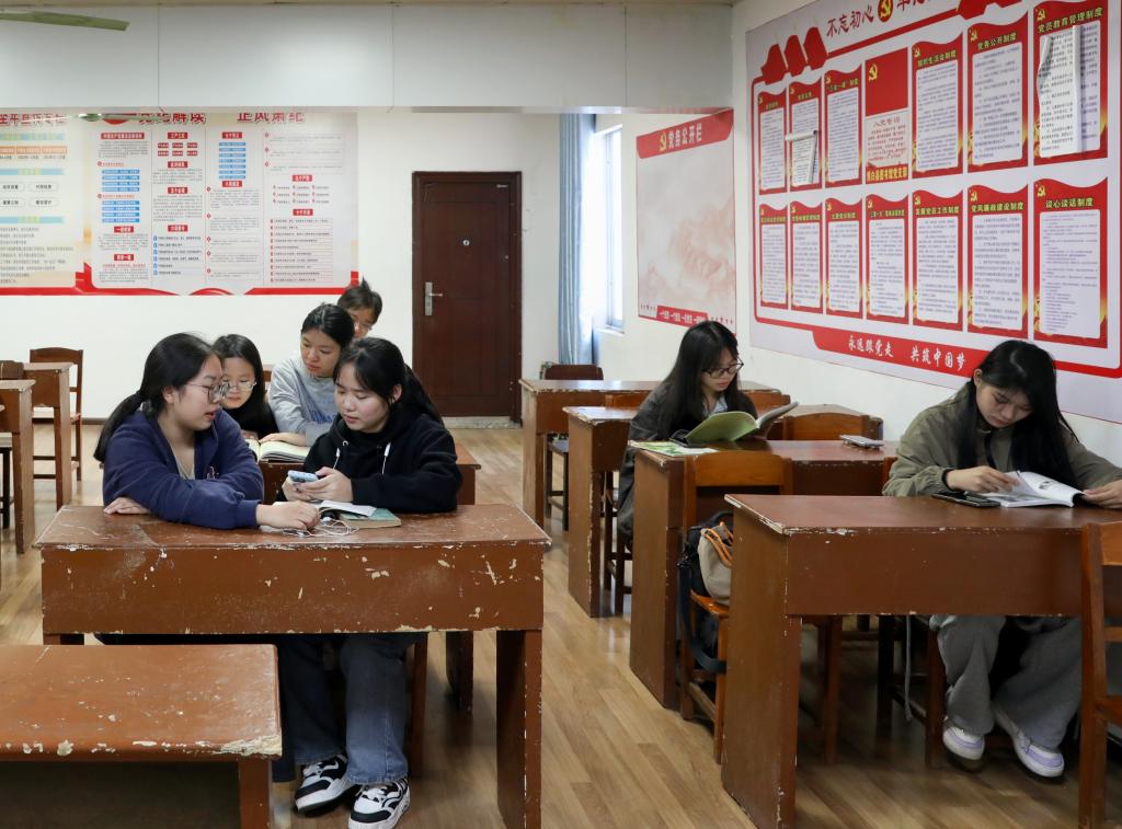 随后,他们来到博白县图书馆,在图书馆管理员的帮助下查阅了与王力相关的书籍材料。师生们共同坐在图书馆的空教室进行阅读书籍,积极讨论在材料中新发现的内容。