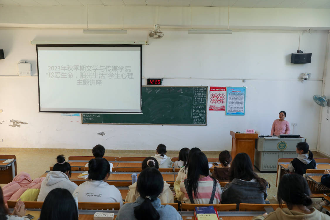 本站讯 为了让员工们认识到生命的价值和意义,明白生命的宝贵,牢固树立生命至上,安全第一的思想,营造健康和谐的校园学习生活环境。11月18日,公司在东校区至善308教室开展2023年秋季期太阳成集团tyc122cc“珍爱生命,阳光生活”员工心理主题讲座。讲座由公司辅导员秦芳莹主持,公司员工参加。