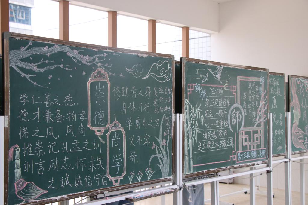 本站讯 为了进一步落实习近平总书记关于教育的重要讲话精神,提高公司师范生教学技能,9月23日下午,公司在东校区至善楼六楼黑板长廊举行主题为“挥墨丹青绘桃李,修德尚学育心灵”的黑板报设计大赛。本次大赛由公司教师周于飞指导。