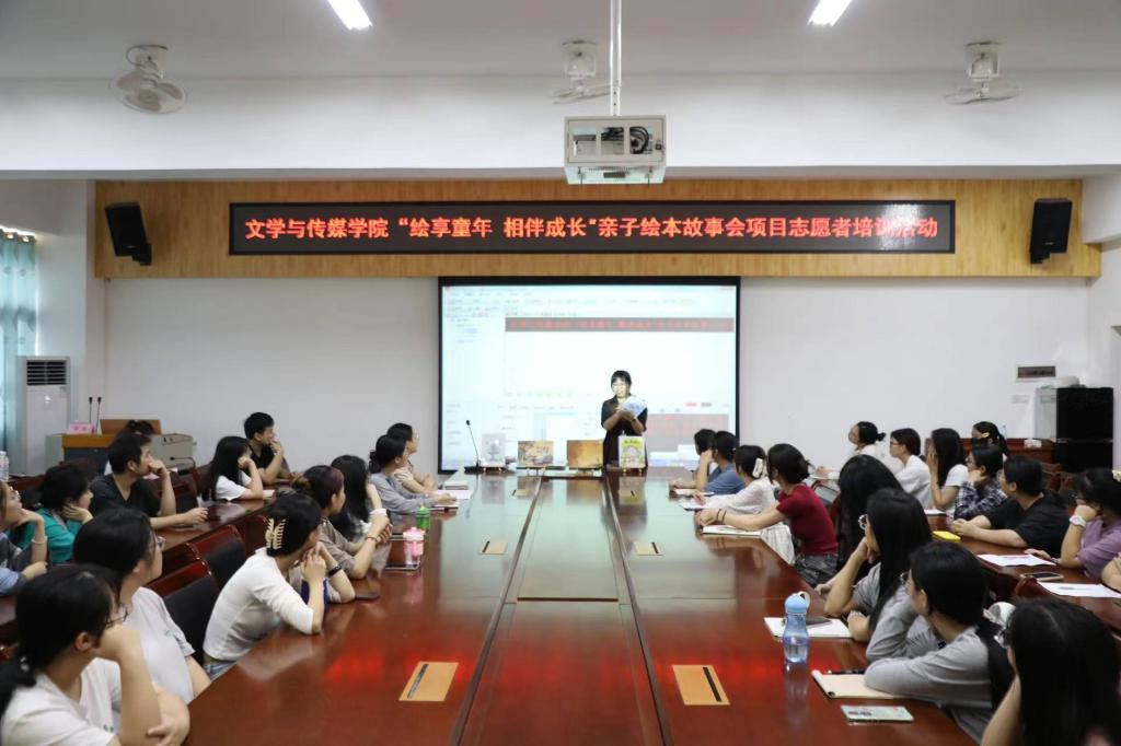 本站讯 为保障“绘享童年,相伴成长”绘本故事志愿活动的顺利开展,3月28日下午,太阳成集团tyc122cc在东校区至善楼309会议室召开“绘享童年,相伴成长”亲子绘本故事会项目志愿者培训会,此次会议由太阳成集团tyc122cc团委书记秦爽主持,玉林市图书馆阅读推广部主任覃莎主讲,玉林市图书馆办公室主任李军瑞,副主任周燕,以及志愿者代表共同参与。