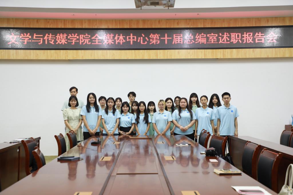 会上,全媒体中心第十届总编室成员以PPT形式依次作述职报告。全媒体中心主要负责人伍丽桦率先发言。她分别从工作的职责、工作回顾、工作总结、收获与展望四个方面依次进行述职。她用“上传下达、统筹规划、监督把控”四个词概括了她的工作职责,并指出作为主要负责人之一,要做到“有耐心、能吃苦、敢做为、争第一”四点。她对自身工作进行回顾,做出了反思与总结。她表示,全媒体中心是一个温暖的集体,她的成长离不开老师和师兄师姐们的帮助。她希望每一位成员都能一直热爱,保持初心,并在接下来的换届选举中积极参与。随后,总编室其他负责人依次进行述职,总结工作中的得与失,分享工作感悟和对未来的展望。