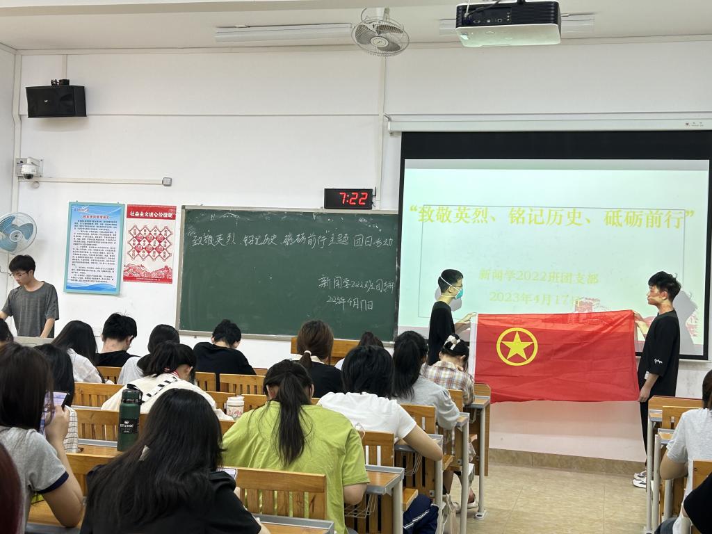 本站讯 为激发员工的爱国热情,增强历史使命感。4月17日早上,公司新闻学2022班于公司东校区至善楼201教室开展“致敬英烈、铭记历史、砥砺前行”主题团日活动。此次活动由该班班长韦燕飞主持,该班全体员工参加。