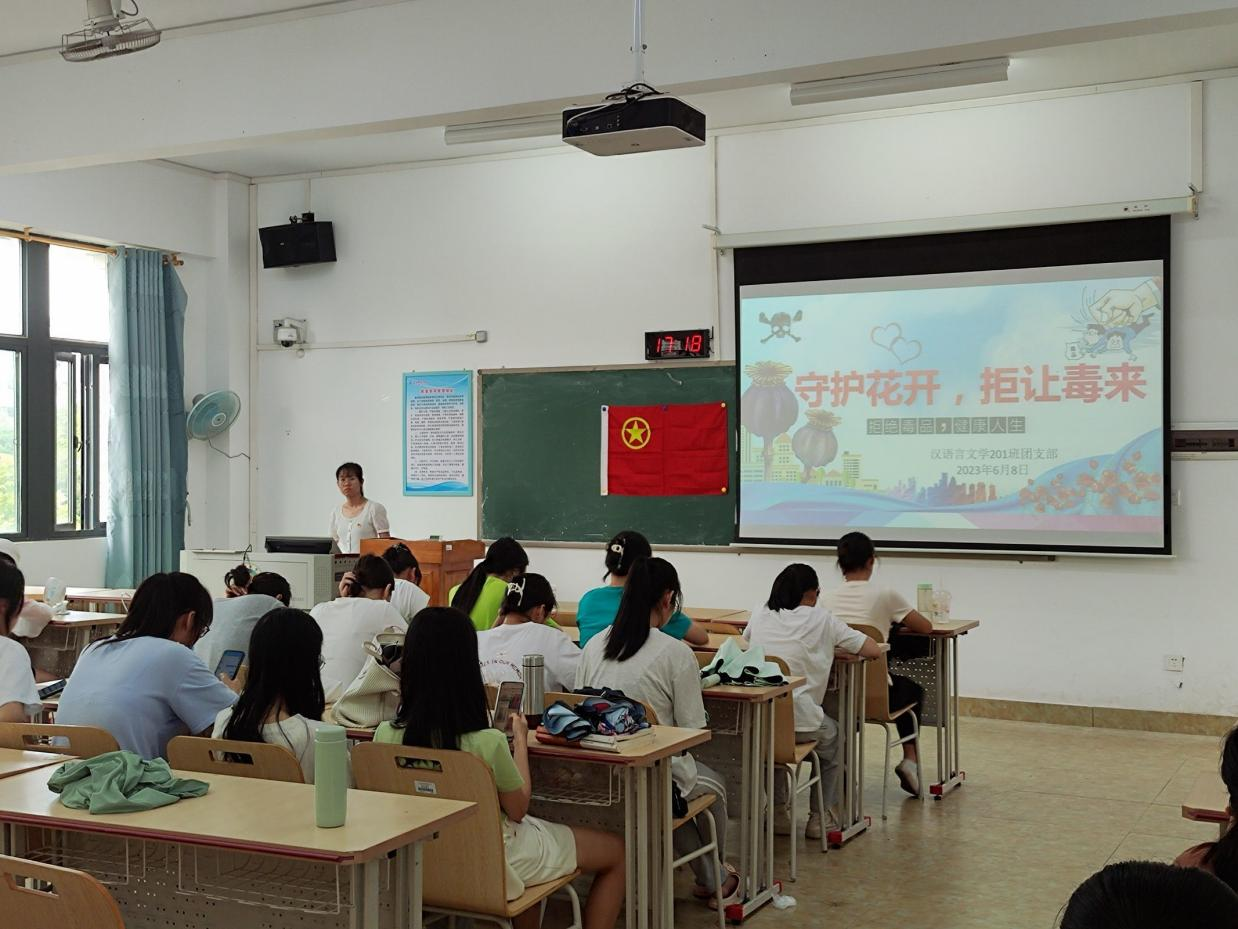 本站讯 为进一步提高团员们的禁毒意识和抵制毒品的能力,帮助团员们坚定禁毒信念,筑牢青春之盾,6月13日下午,汉语言文学201班团支部于公司东校区至善楼302教室开展“守护花开,拒让毒来”主题团日活动。本次活动由该班组织委员许文凤主持,该班全体成员参加。