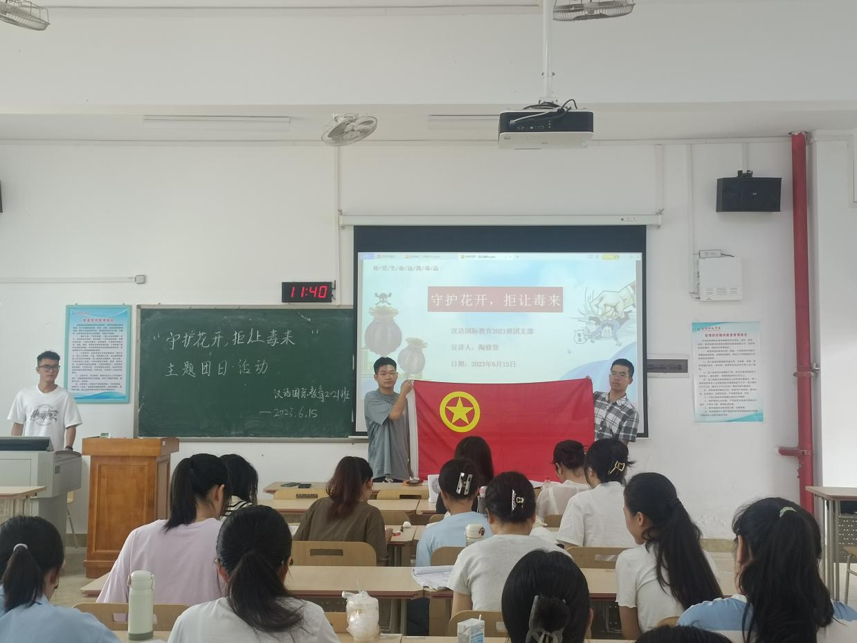 本站讯 为强化禁毒宣传教育,提高员工对毒品的认识和警惕性,树立拒绝毒品的坚固心理防线。6月15日上午,公司汉语国际教育2021班于公司东校区至善楼302教室开展“守护花开,拒让毒来”主题团日活动。本次团日活动由该班组织委员陶修贤主持,全体员工参加。